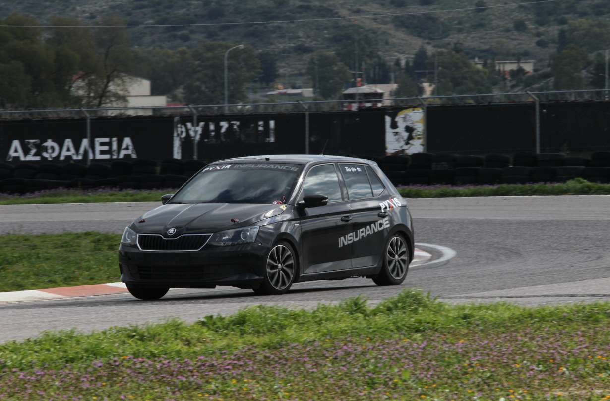 Πριν μπεις στην πίστα πρέπει να απενεργοποιήσεις το Traction Control από το σχετικό μενού, διαφορετικά είναι σχεδόν σαν να μην έχεις βάλει μπροστά. Χωρίς ταπετσαρίες και ηχομόνωση, η βαβούρα μέσα στην καμπίνα πολλαπλασιάζει την αίσθηση της ταχύτητας και φτιάχνει ατμόσφαιρα… πολεμική. Η επιτάχυνση δεν κόβει την ανάσα, αλλά έχει σαφώς περισσότερο νεύρο από όσο φαντάζεσαι, καμία σχέση με «πολιτικό» Fabia 1.2 και 1.0 TSI. Το τιμόνι από την άλλη είναι σχεδόν όπως στο μοντέλο δρόμου. Αρκετά ελαφρύ, δεν έχει τη σπαρταριστή ξερή αίσθηση ενός καθαρόαιμου, ούτε αυτή την πολύ χαρακτηριστική τάση των αυτοκινήτων με αγωνιστικά λάστιχα να «διαβάζει» τις ανωμαλίες του δρόμου και να τις ακολουθεί. Συμπλέκτης - κιβώτιο, πολύ λογικά και αναμενόμενα έχουν επίσης την αίσθηση του αυτοκινήτου δρόμου, αφού δεν υπάρχουν αλλαγές.